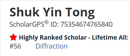 近日,国际学术机构ScholarGPS(https://scholargps.com/)发布了2025年全球前0.05%顶尖科学家榜单,该榜单设有“终身成就”(Highly Ranked Scholar - Lifetime)与“近五年影响力”(Highly Ranked Scholar - Prior 5 Years)两类,旨在表彰在相关学科领域取得突出学术影响力的学者。我院唐叔贤教授入选“终身成就榜单”,在衍射领域位列全球第56名。