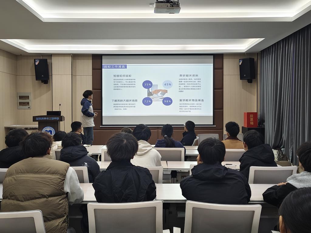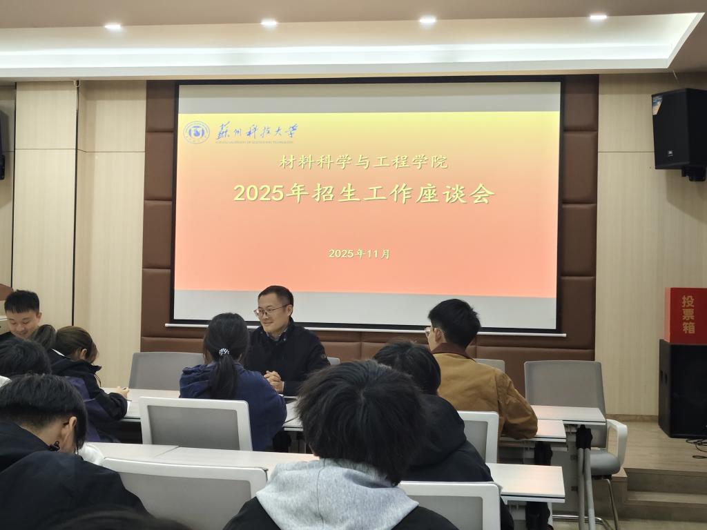 为全面总结2025年本科招生工作经验,优化招生宣传策略,并为第八届“寒假回访母校”社会实践活动做好组织动员,11月17日下午,材料科学与工程学院在院士楼报告厅组织召开2025级宿迁籍新生招生工作座谈会。学院党委副书记卢长彤、学工办主任王文娟、辅导员钟演、往届优秀宣讲员代表及2025级新生代表共同参会,围绕招生宣传与母校回访活动展开深入交流。