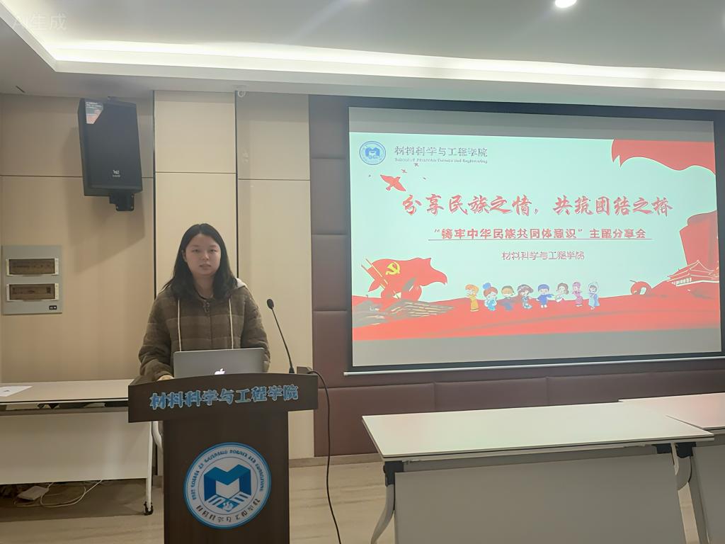 为深化民族团结教育,促进各民族学生交流互鉴,12月3日,材料科学与工程学院在院士楼报告厅举办“铸牢中华民族共同体意识”主题分享会。
