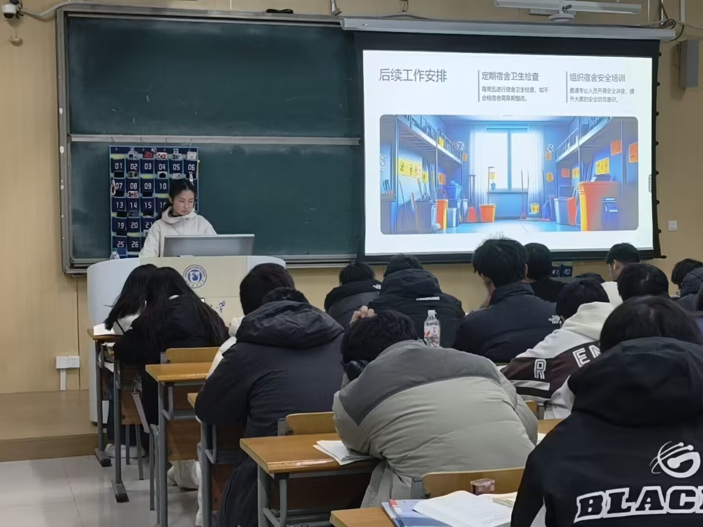 学院坚持教育引导与行为管理相结合。各班级组织召开了“宿舍安全记心间,平安校园共守护”主题班会,结合近期高校案例与《学生手册》中关于宿舍安全管理的相关规章制度,深入讲解消防安全、用电安全知识。班会通过案例分析、图片展示、互动讨论等形式,使学生深刻认识到安全无小事,自觉承诺遵守宿舍管理规定,主动参与到安全环境的维护中来。此次系列班会有效提升了学生的安全防范意识和自主管理能力。