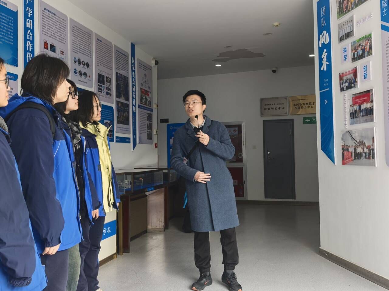 随后,刘峰老师带领同学们参观了太阳能光电转换、电催化、储能材料等多个实验室,通过现场演示与互动答疑,帮助学生直观了解材料学科的应用场景。活动期间,刘峰老师还分享了唐叔贤院士、李长明教授的学术成就,并以院训“厚德笃学,奋进创新”勉励学生。