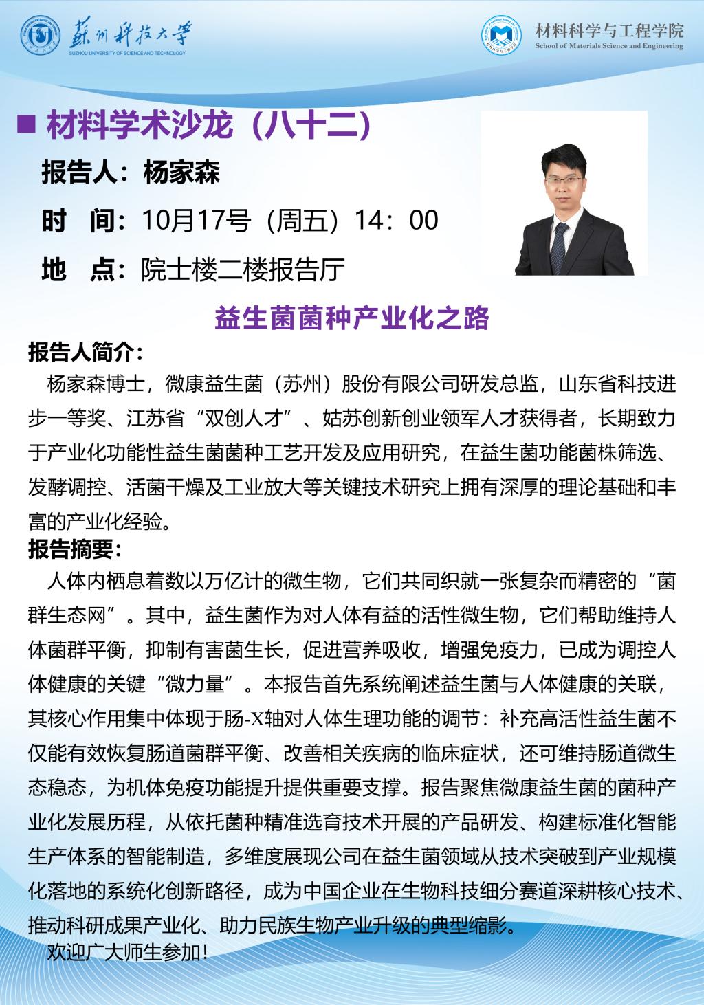 材料学术沙龙八十二:益生菌菌种产业化之路