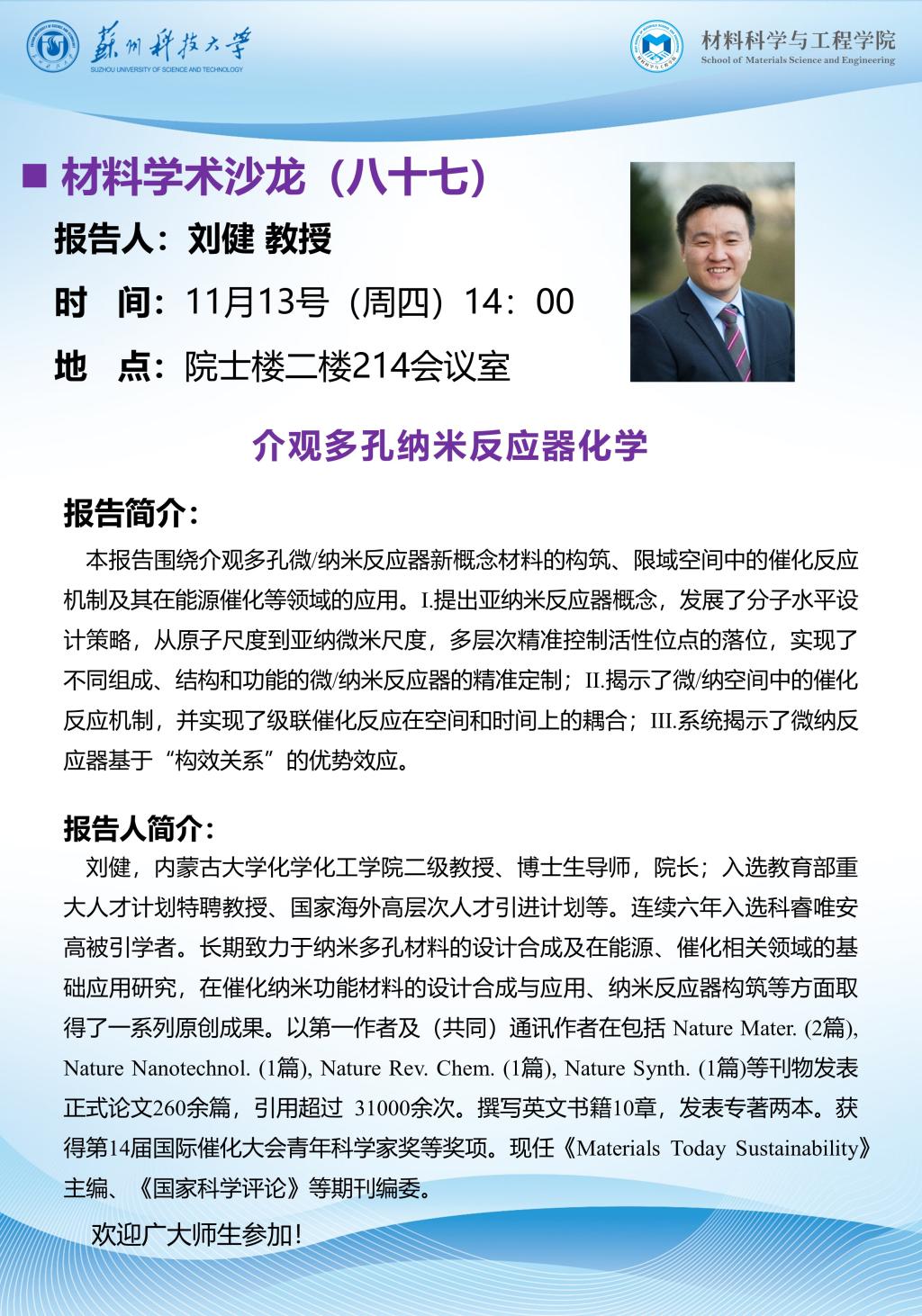 材料学术沙龙八十七:介观多孔纳米反应器化学