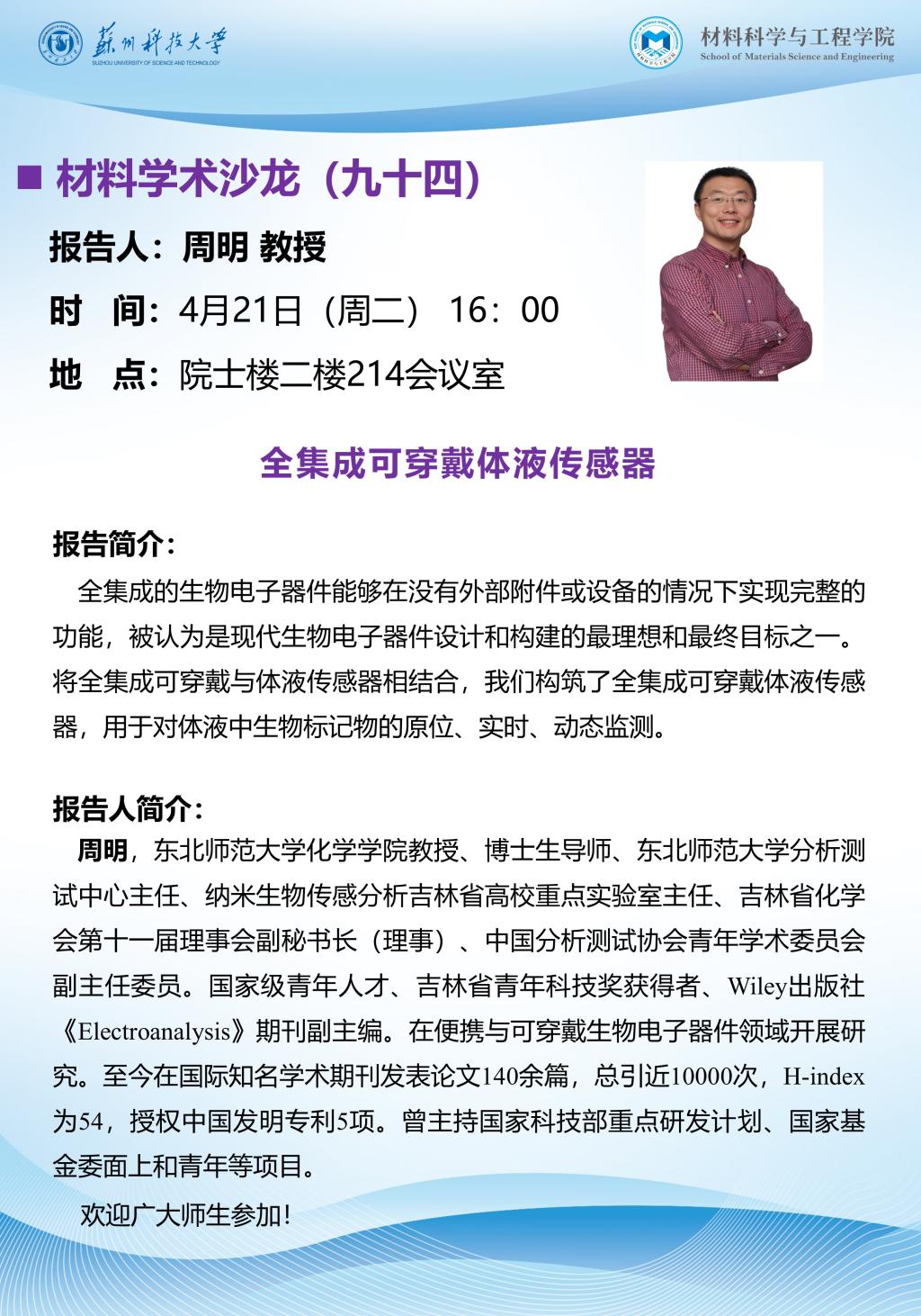 材料学术沙龙九十四:全集成可穿戴体液传感器